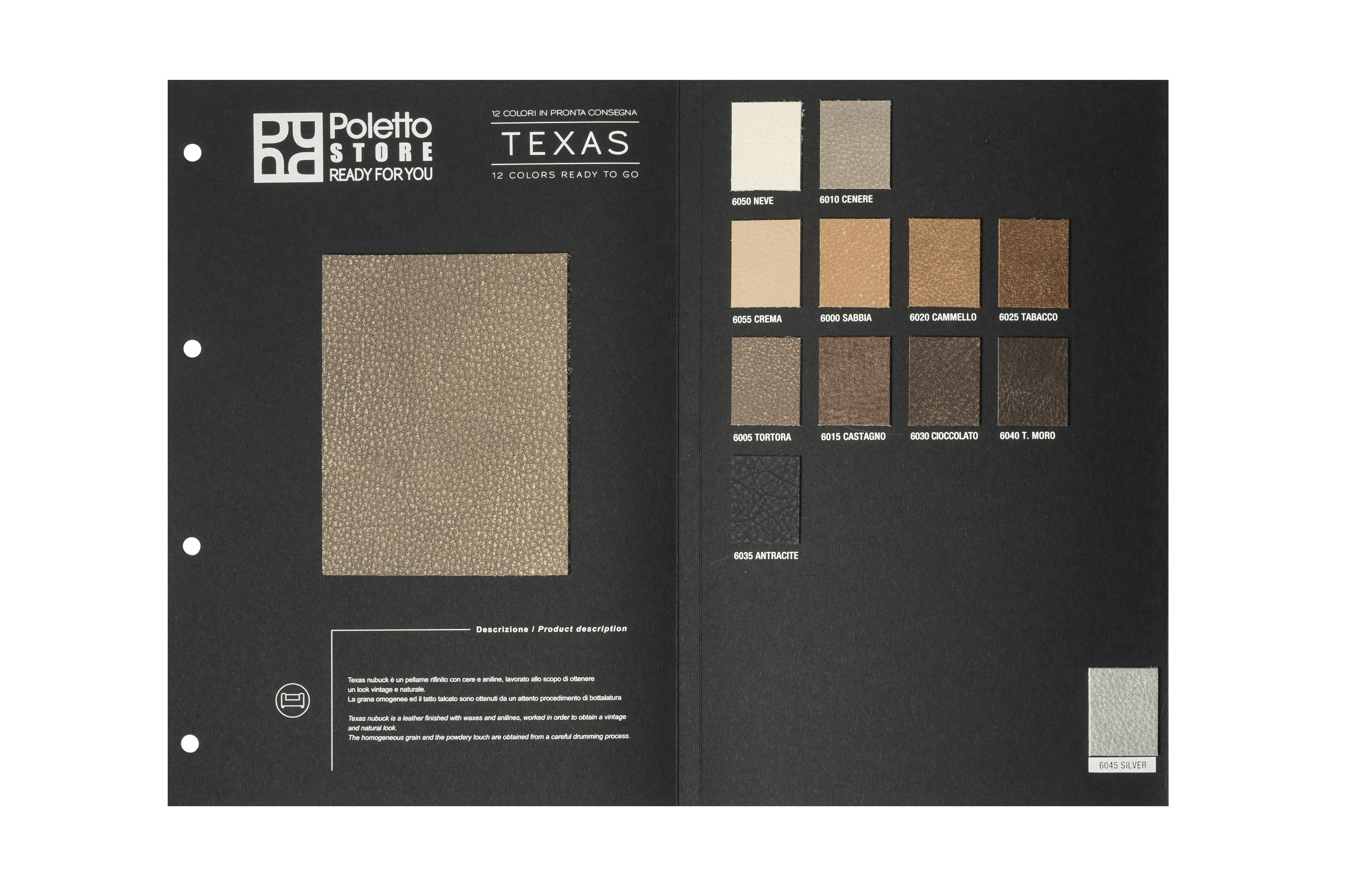 Pellame rifinito con cere a aniline, lavorato allo scopo di ottenere un look vintage e naturale.